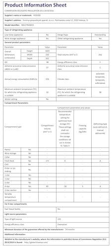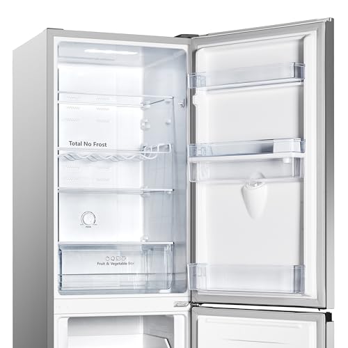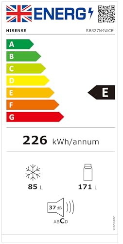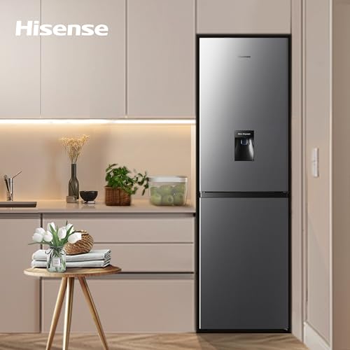 Hisense RB327N4WCE 55cm Freestanding 50/50 Fridge Freezer – 251 litre capacity – Total No Frost – Non-plumbed Water Dispenser – Silver – E Rated, H182.4 x W55 x D55.6 (cm)
